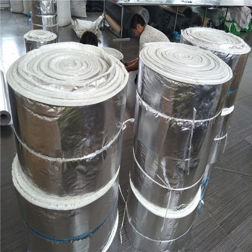云緯覆鋁箔針刺毯是在現(xiàn)有陶瓷纖維計刺毯的基礎上利用專用機械,通過專用粘結(jié)劑將金屬鋁箔平整地覆到針刺毯表面形成的一種復合產(chǎn)品。由于在針刺毯表面增加了一層致密 的金屬鋁箔層,有效屏蔽了熱量透過纖維毯向空氣的對流,對輻射熱量形成有效反射,從而極大地提高了產(chǎn)品的絕熱性能。